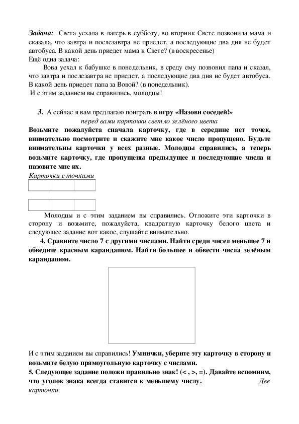 Чтобы не запутаться внимательно слушайте и следите пальчиком.Задача: Света уехала в лагерь в субботу, во вторник Свете позвонила мама и
