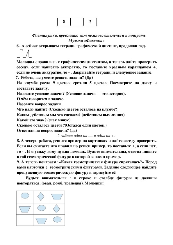 9. А теперь поиграем: «Какая геометрическая фигура спряталась?» Перед