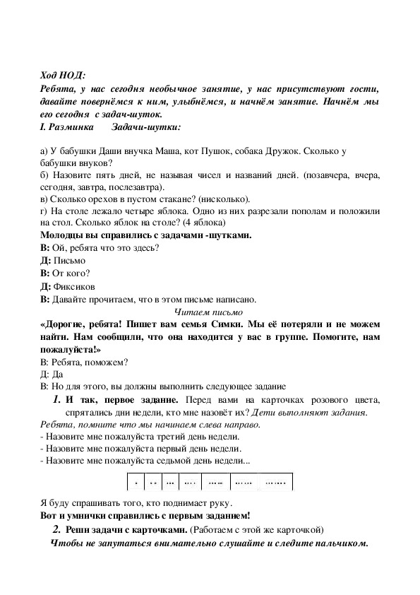 спрятались дни недели, кто мне назовёт их? Дети выполняют задания.