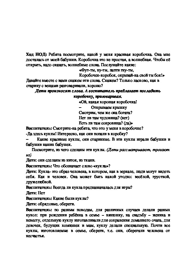 куклы.Ход НОД: Ребята посмотрите, какой у меня красивая коробочка. Она мне