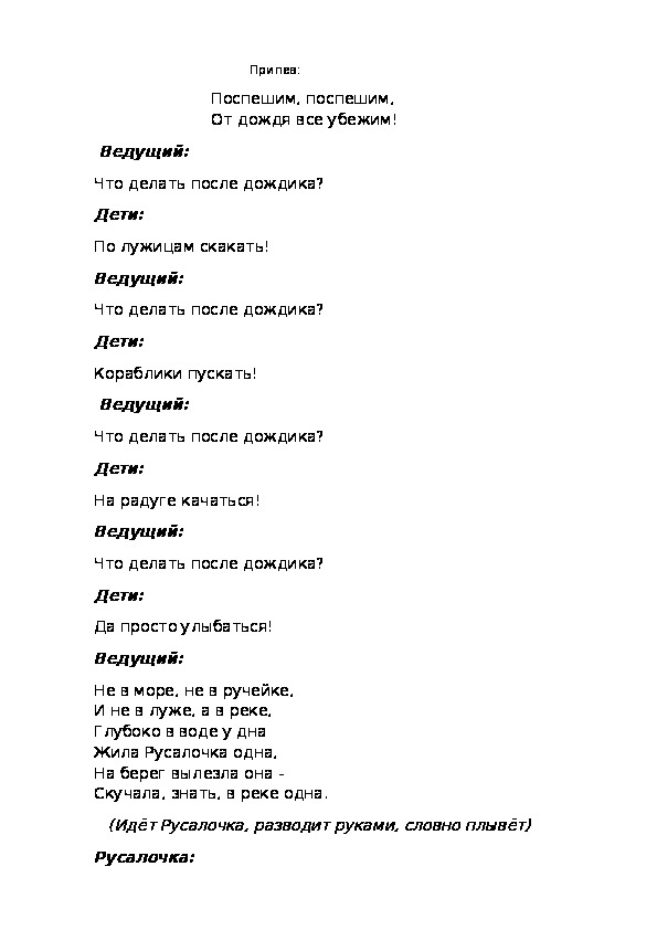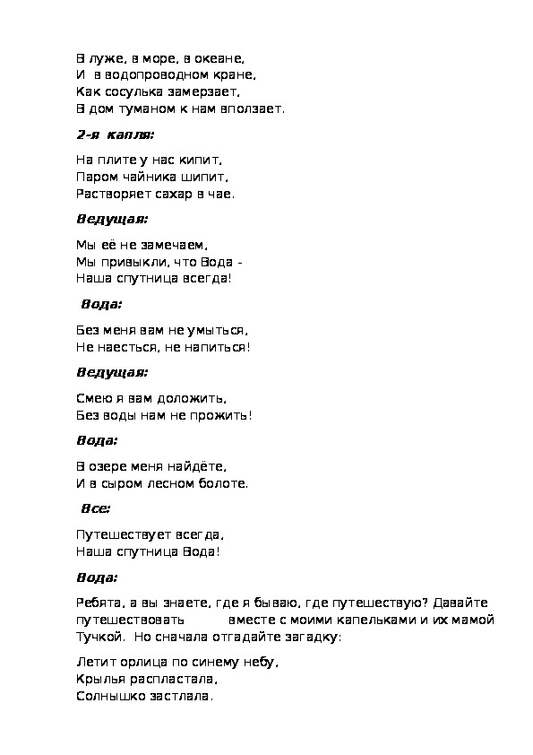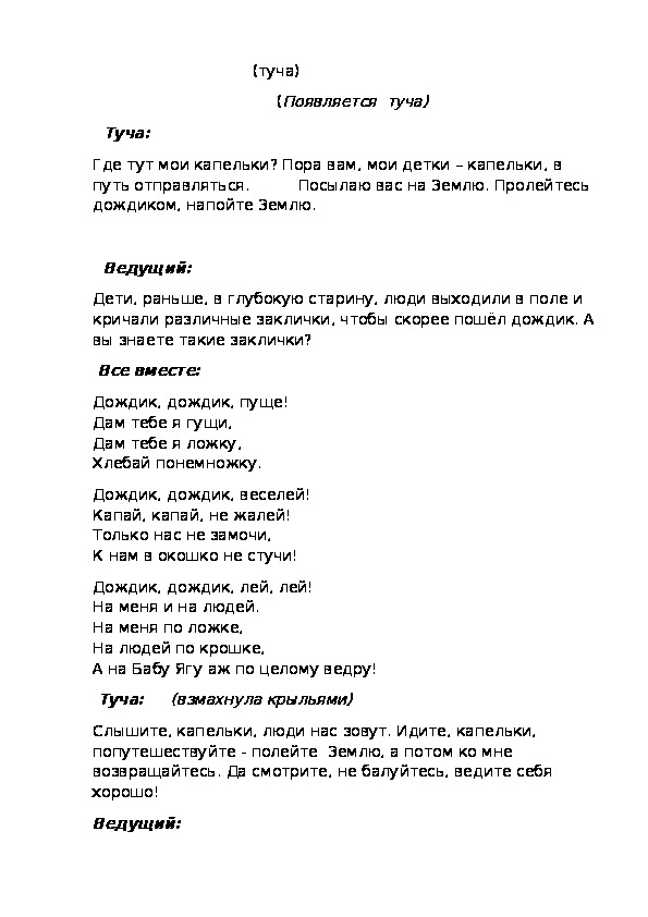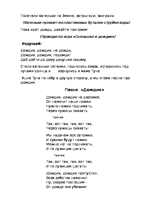 Ведущий:Полетели капельки на Землю, запрыгали, заиграли.