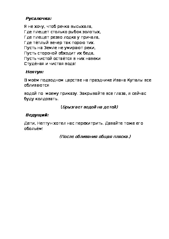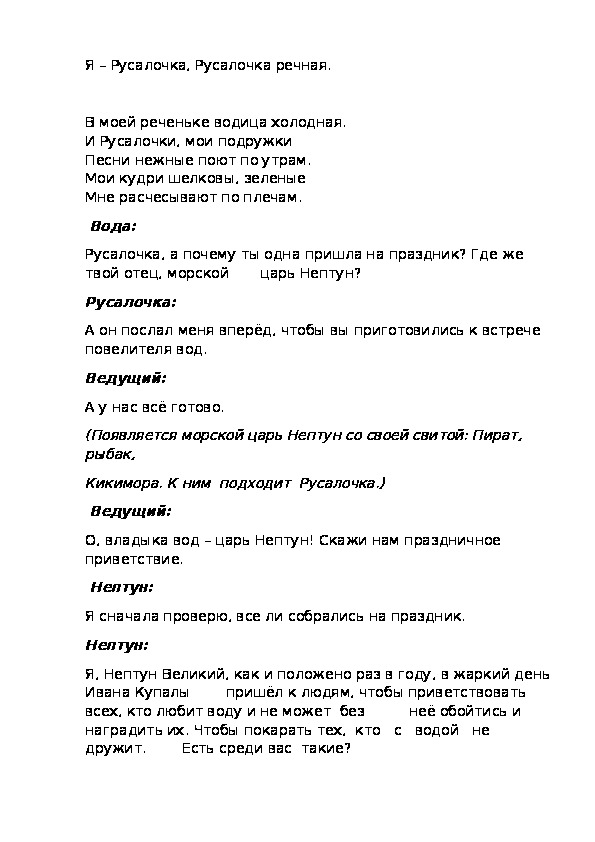 В моём подводном царстве на празднике Ивана Купалы все