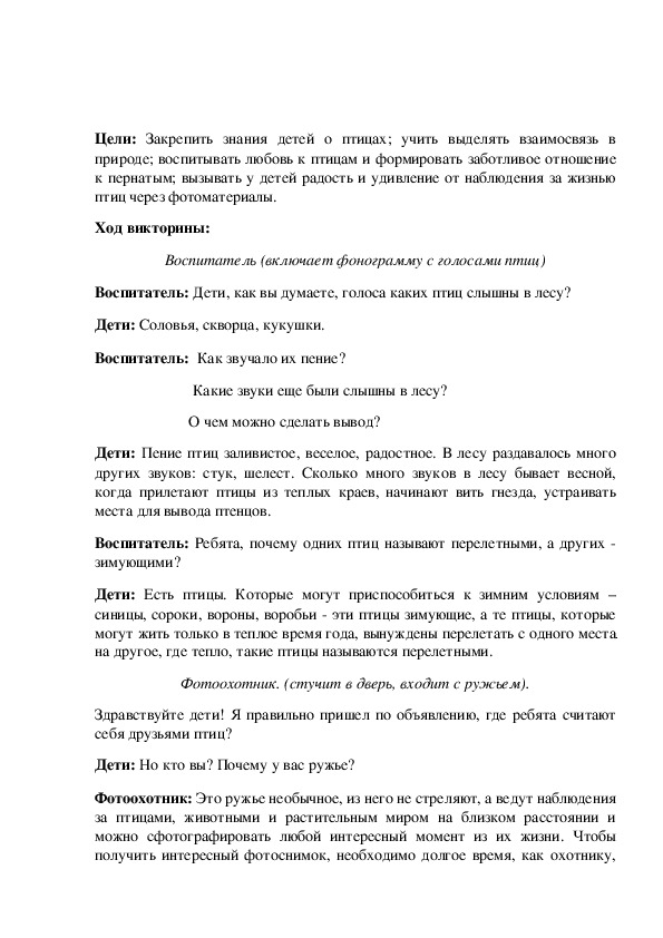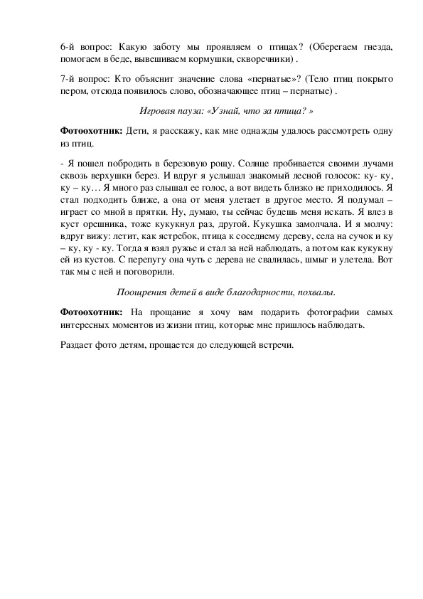 природе; воспитывать любовь к птицам и формировать заботливое отношение