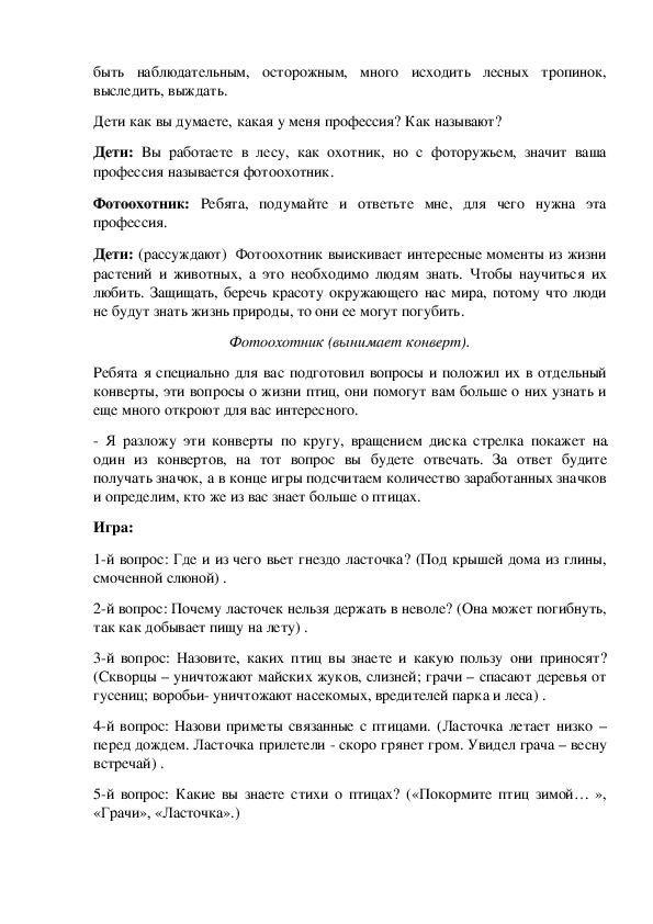 Дети: Вы работаете в лесу, как охотник, но с фоторужьем, значит ваша