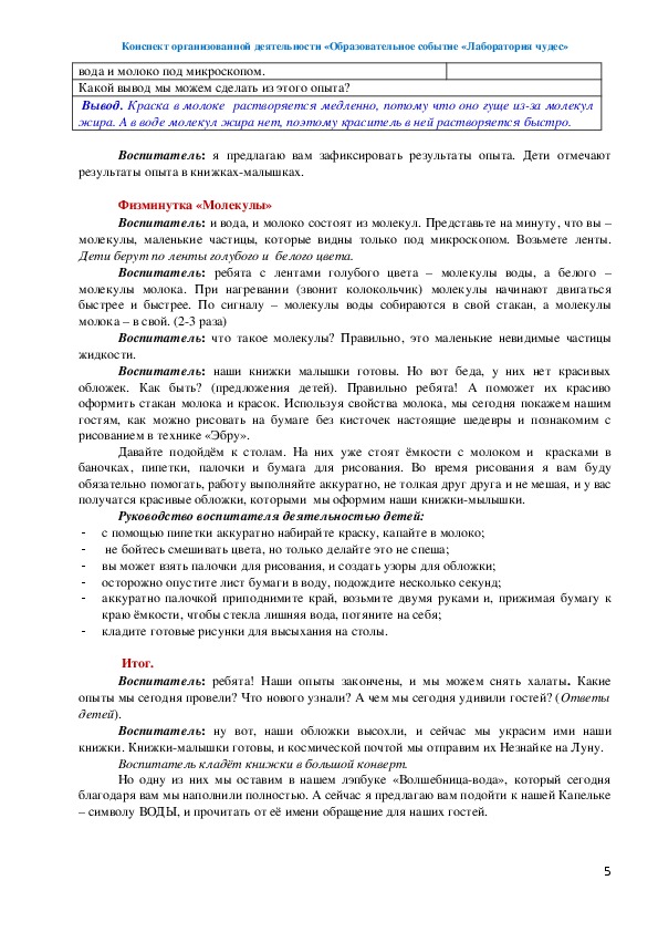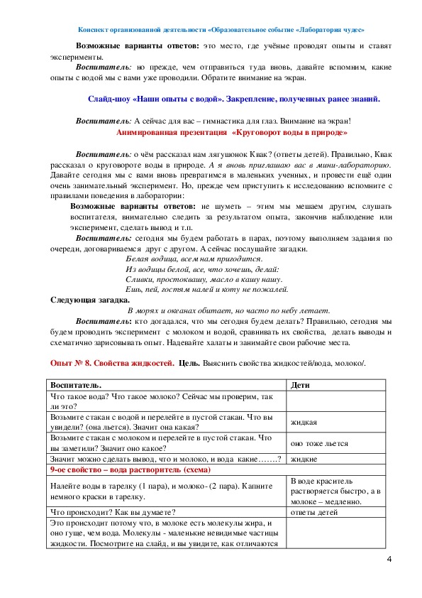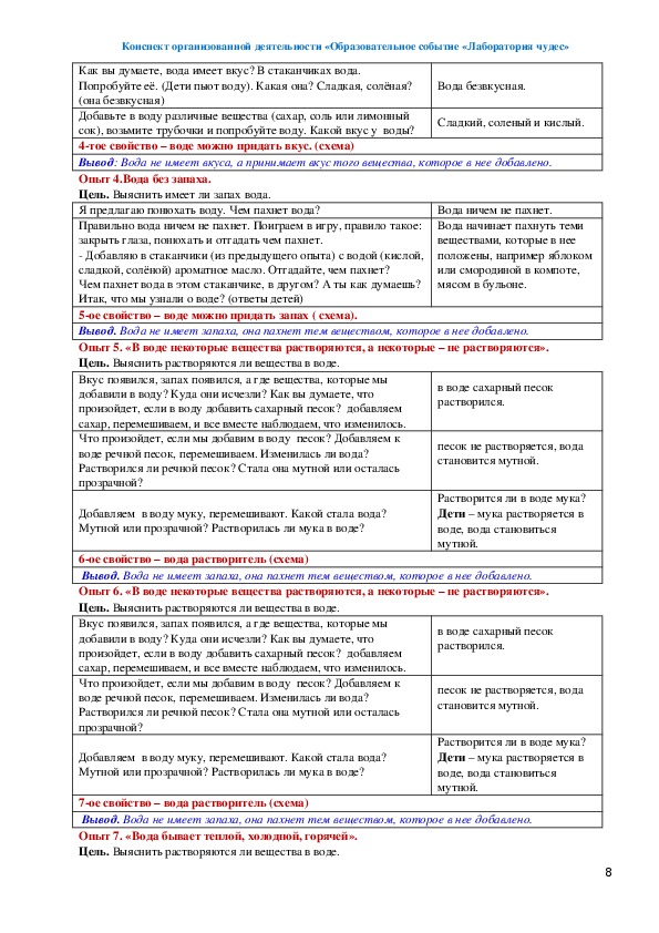 8Конспект организованной деятельности «Образовательное событие «Лаборатория чудес»