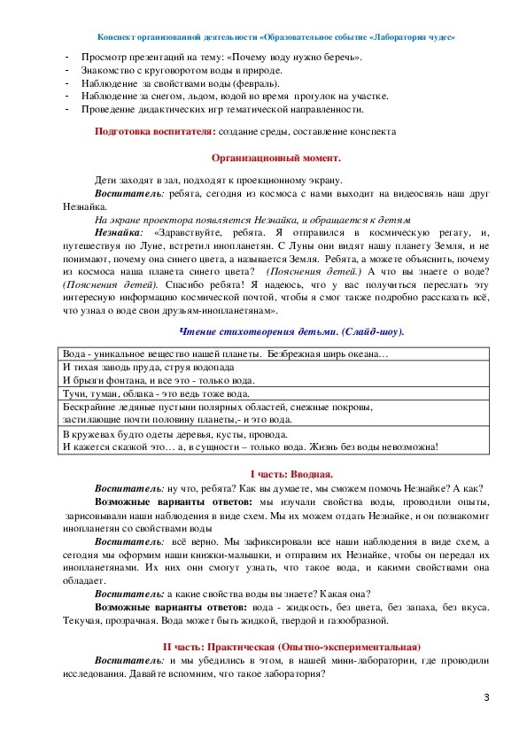 1Конспект организованной деятельности «Образовательное событие «Лаборатория чудес»