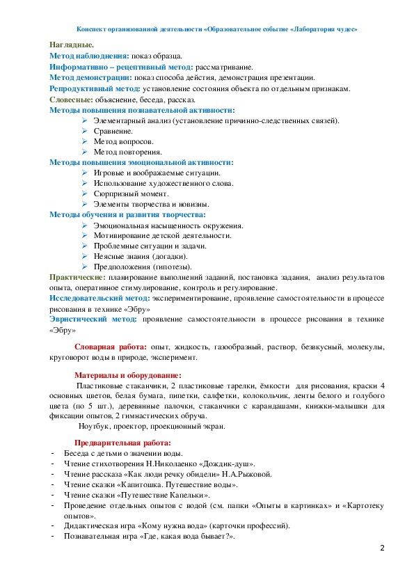 2Конспект организованной деятельности «Образовательное событие «Лаборатория чудес»