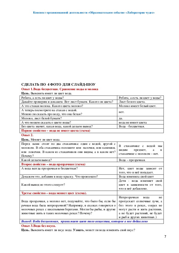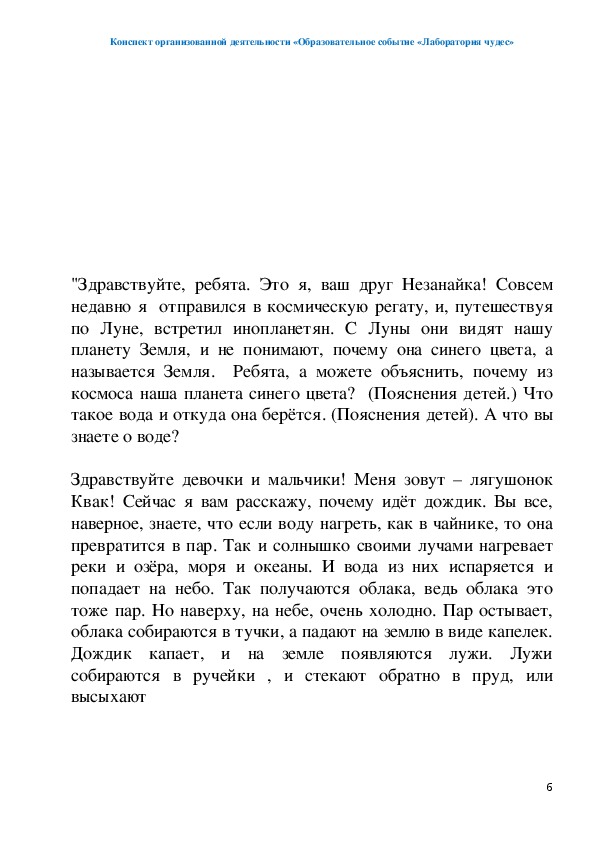 7Конспект организованной деятельности «Образовательное событие «Лаборатория чудес»