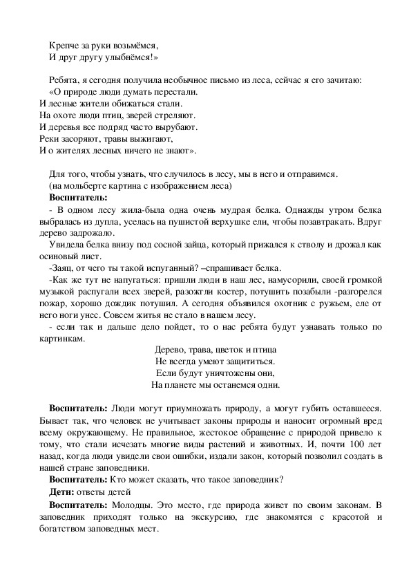Ребята, я сегодня получила необычное письмо из леса, сейчас я его зачитаю: