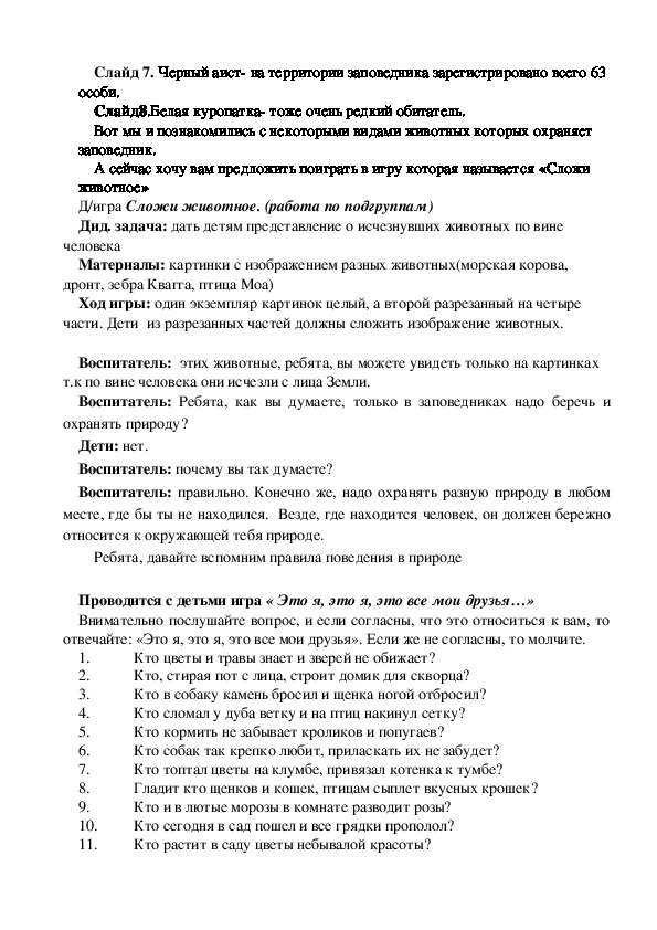 Воспитатель: Правильно ребята. Главная задача заповедников сохранить и