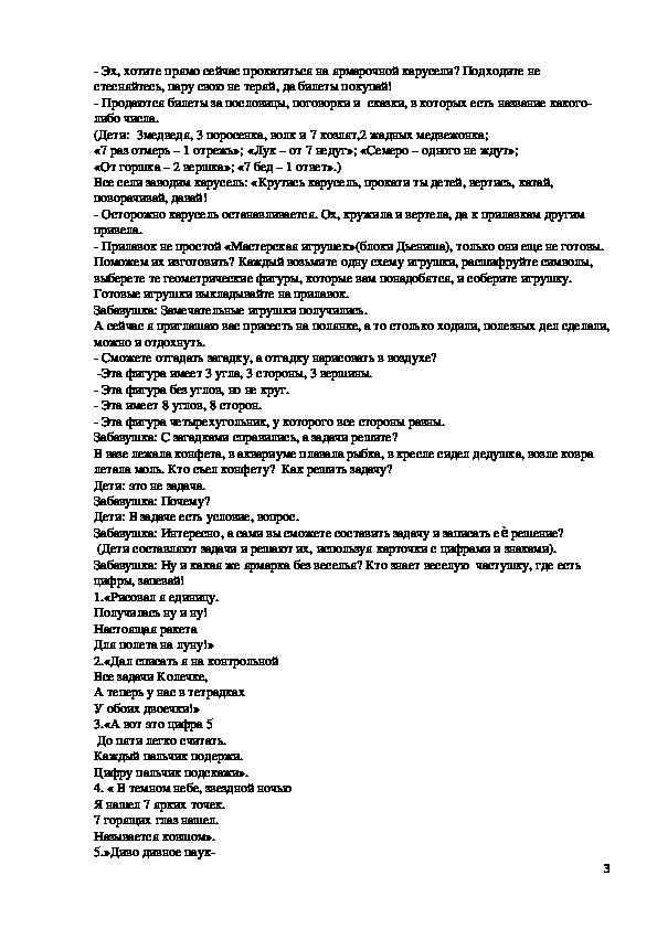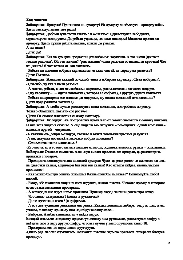 беседа о ярмарке, разучивание пословиц и поговорок с названием числа,