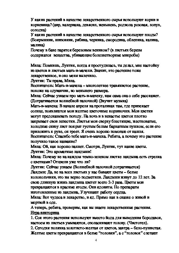 4. Рассказать детям о многообразии лекарственных трав и их пользе.
