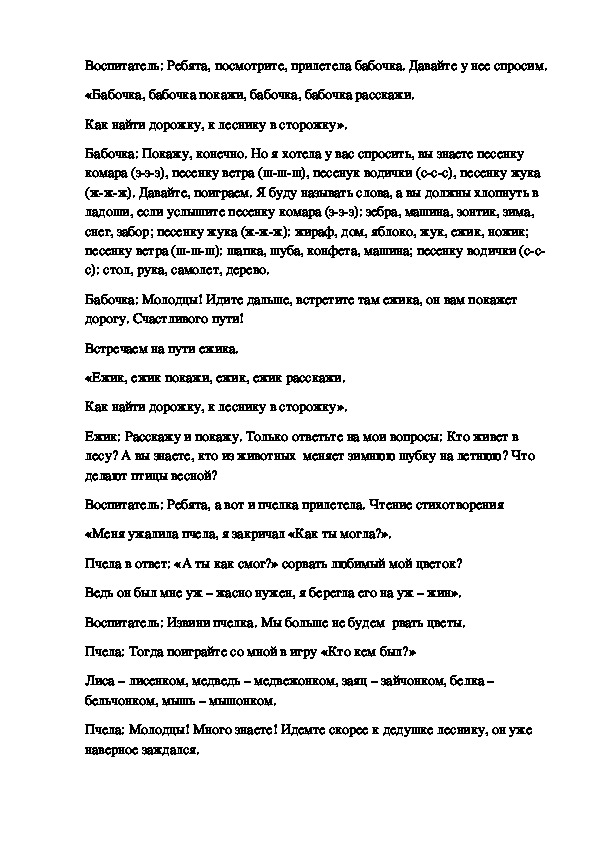 Бабочка: Молодцы! Идите дальше, встретите там ежика, он вам покажет