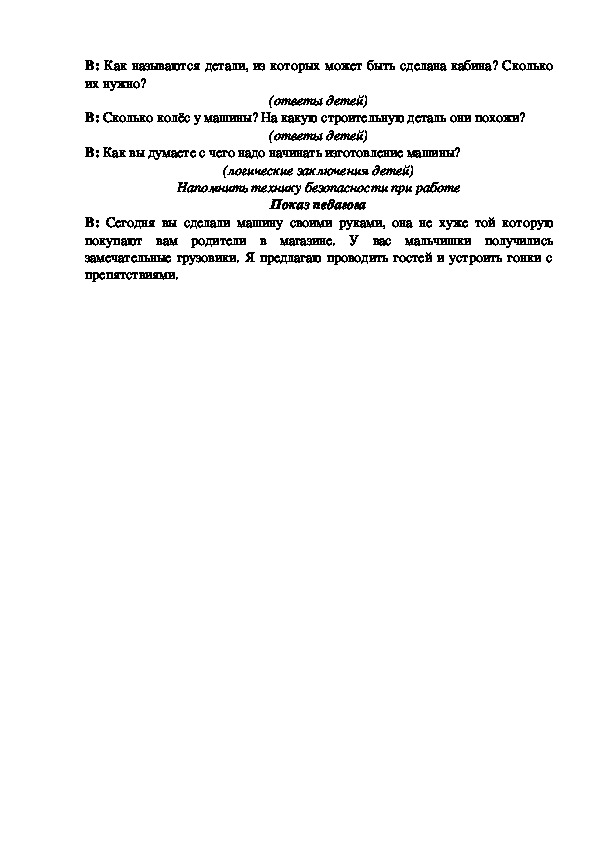 В: Сегодня мы сделаем грузовую машину. Рассмотрим образец. Из каких
