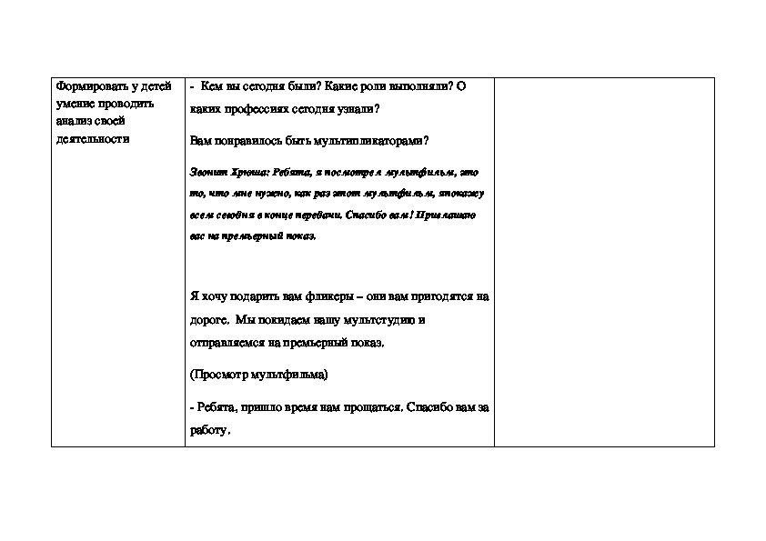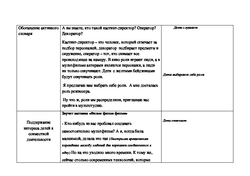 Цель: формирование у дошкольников устойчивого интереса к созданию мультипликационного кино, обогащение и