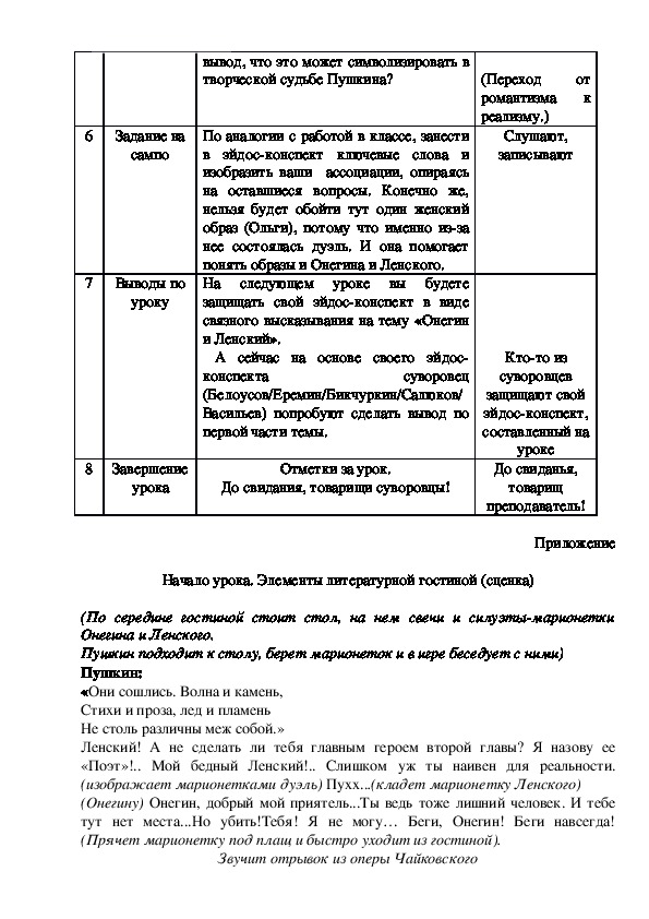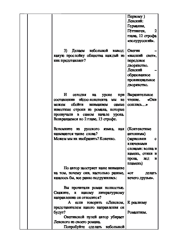 образовательные: продолжить изучение творчества А.С.Пушкина, продолжить знакомство с романом и его героями; в ходе сравнительной характеристики Онегина и Ленского показать своеобразие характера Ленского, сходство и различие двух типов дворян пушкинской поры; продолжить формирование коммуникативной компетенции;