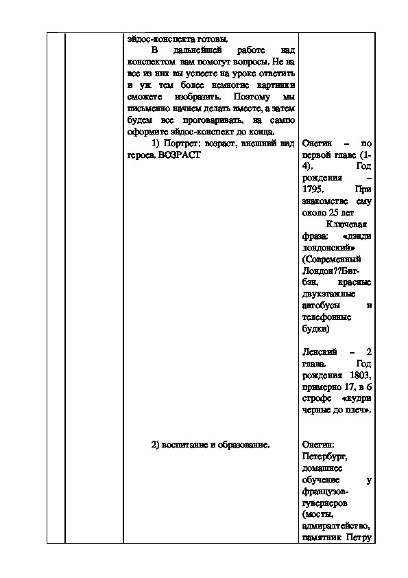 Методическая цель: показать методику работы по составлению эйдос-конспекта на уроке литературы.