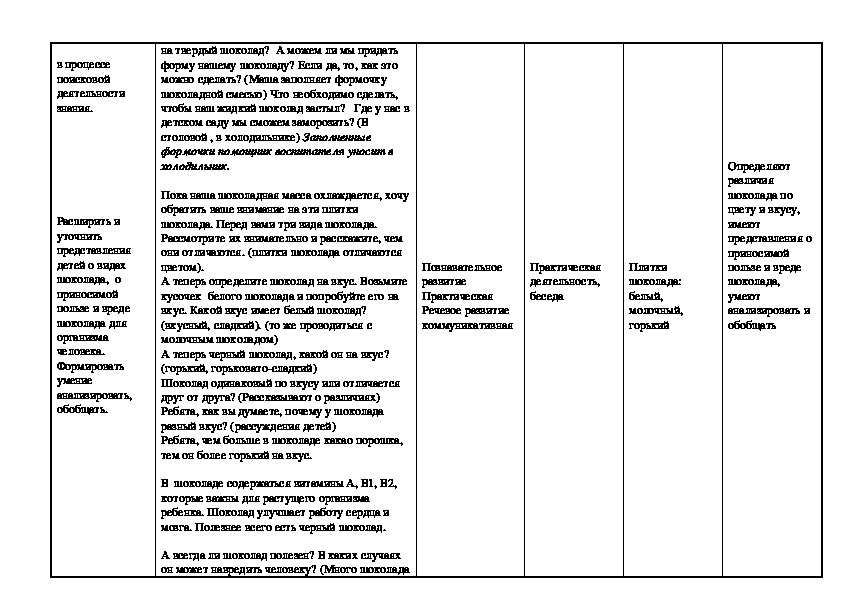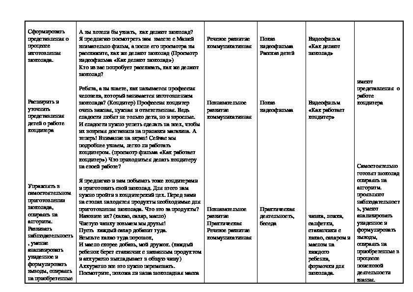 Программное содержание: расширить и обобщить знания детей шоколаде, его свойствах, познакомить детей с профессией «кондитер»,