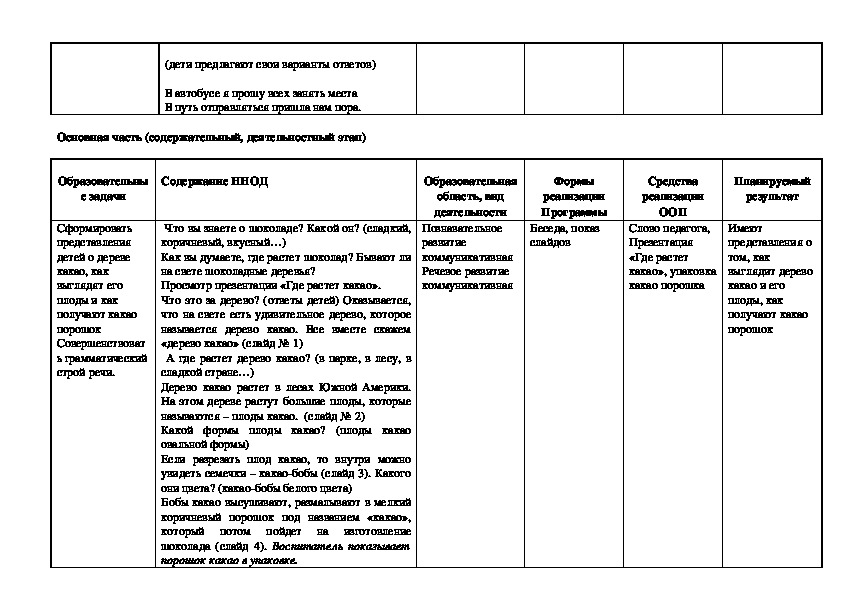 Где растет какао? На что похож его плод? Что находиться внутри плода? Что делают с зернами какао, прежде чем отправить их на кондитерскую фабрику?открытое итоговое занятие в старшей группе