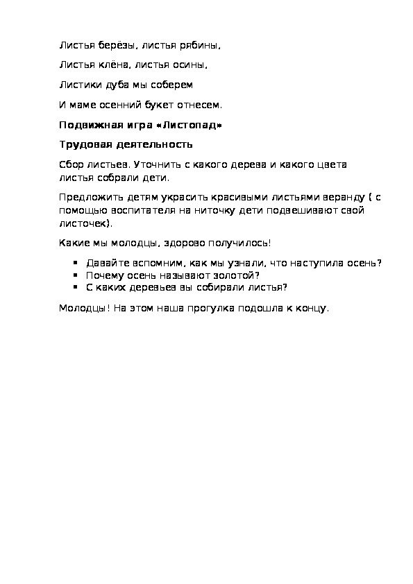 Молодцы! На этом наша прогулка подошла к концу.конспект "Золотая осень"