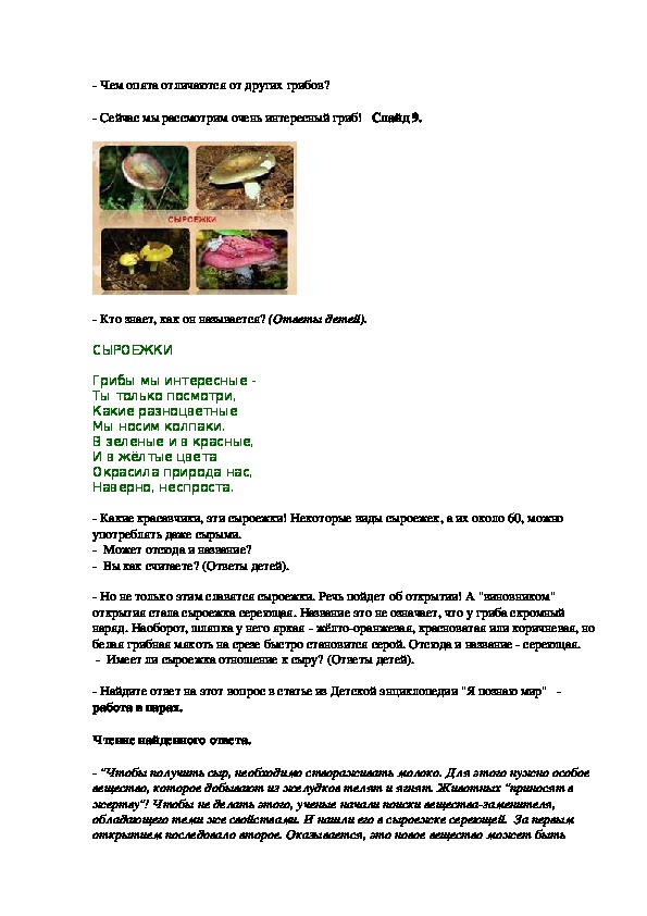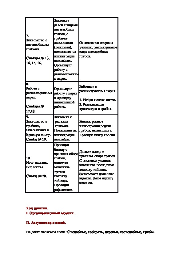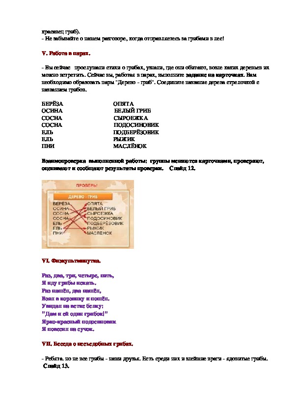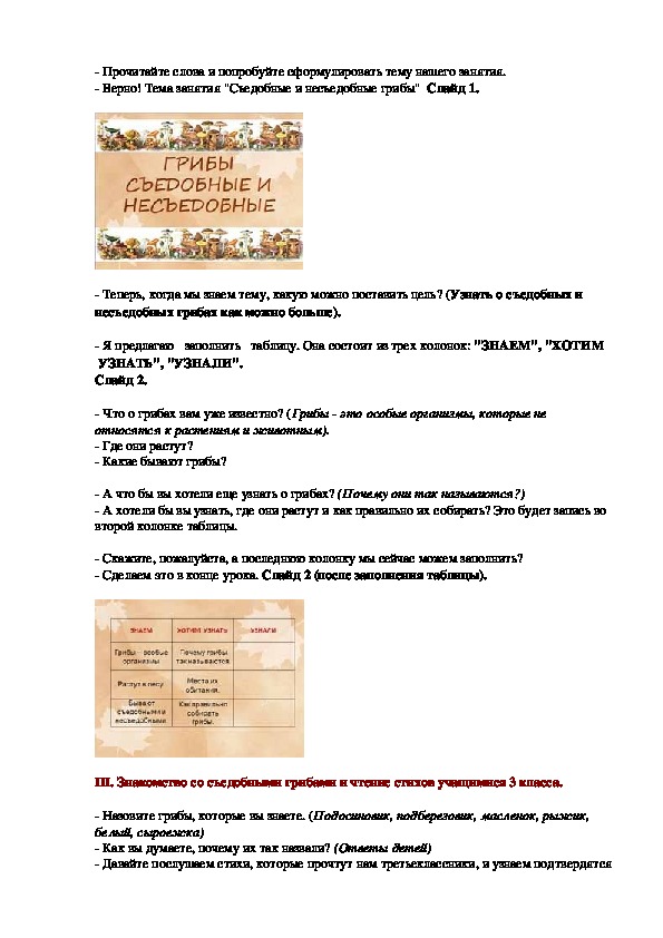 которой учащиеся 3 класса заучивают стихи о грибах. В ходе занятия ведётся работа по