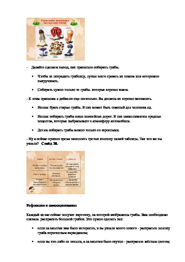 IX. Знакомство с редкими грибами. Итог занятия. Рефлексия.