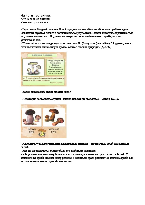 бледная поганка зачемнибудь нужна, если ее создала природа". [3, c. 32]