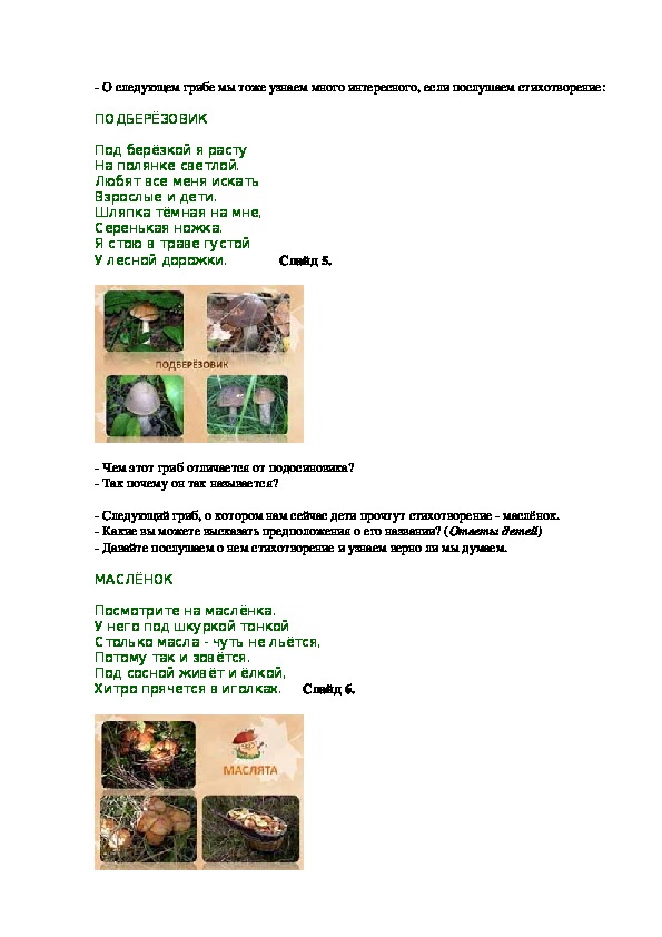 Каждый из вас сейчас получит карточку, на которой изображены грибы. Вам необходимо