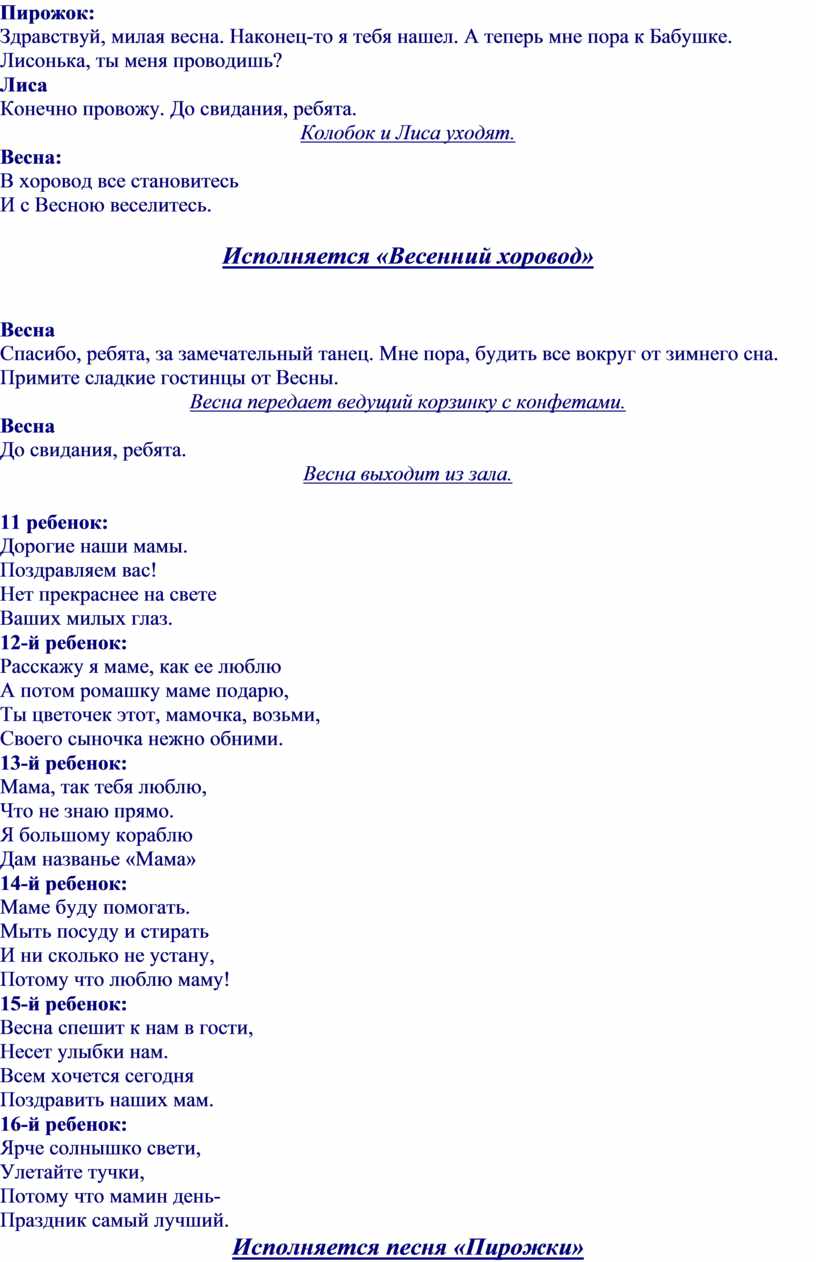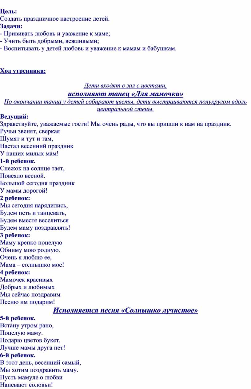 Ход утренника: