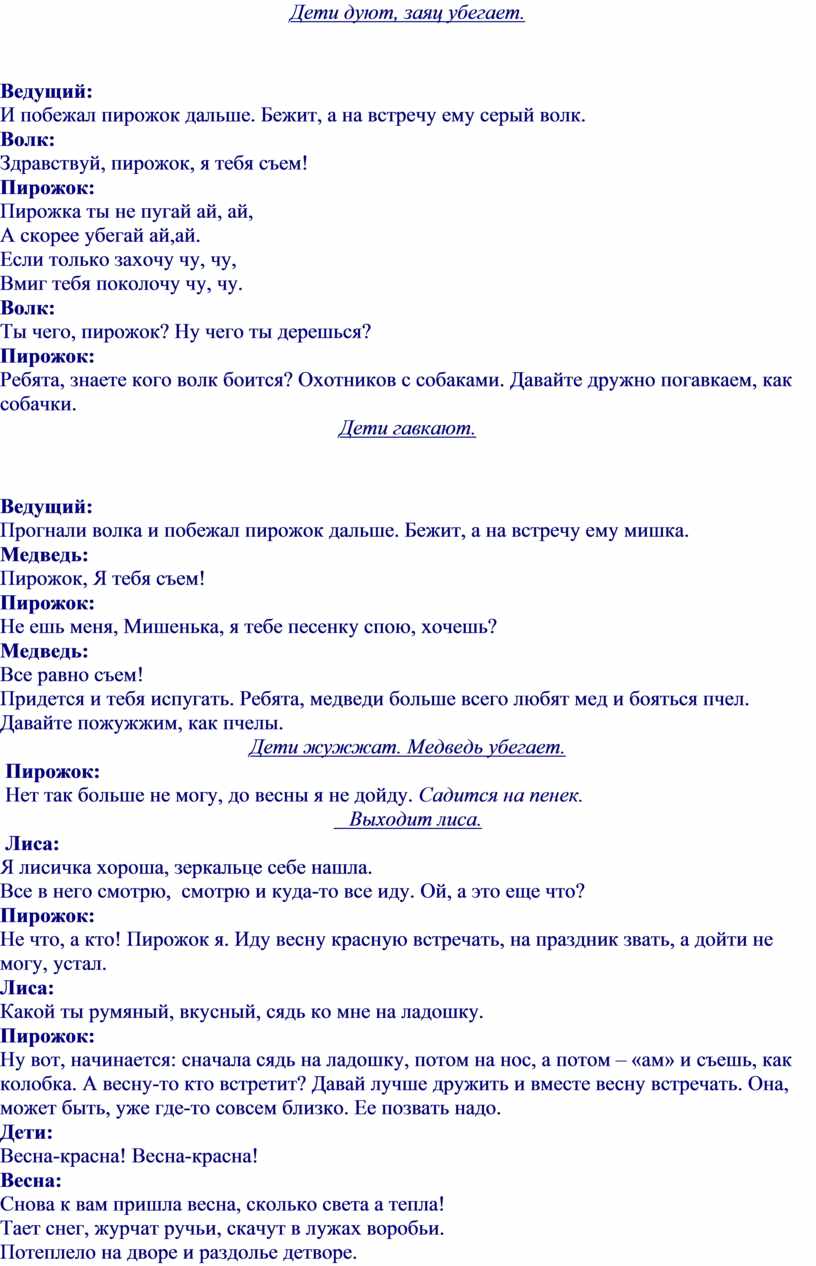 Ну вот, начинается: сначала сядь на ладошку, потом на нос, а потом – «ам» и съешь, как колобка. А весну-то кто встретит? Давай лучше дружить и вместе весну встречать. Она, может быть, уже где-то совсем близко. Ее позвать надо.