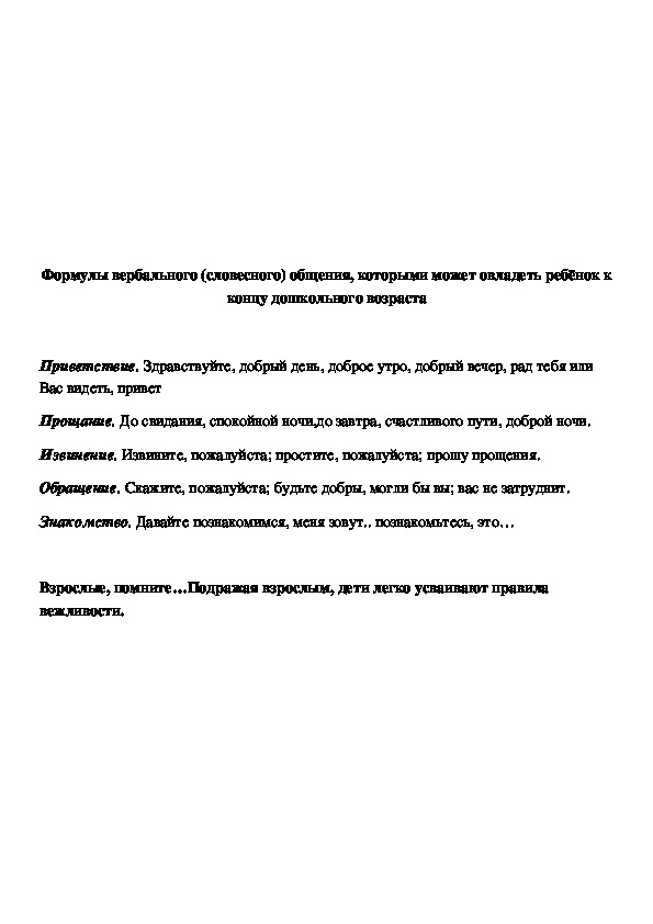 границ для занятий ставить не следует.Формулы вербального (словесного) общения, которыми может овладеть ребёнок к