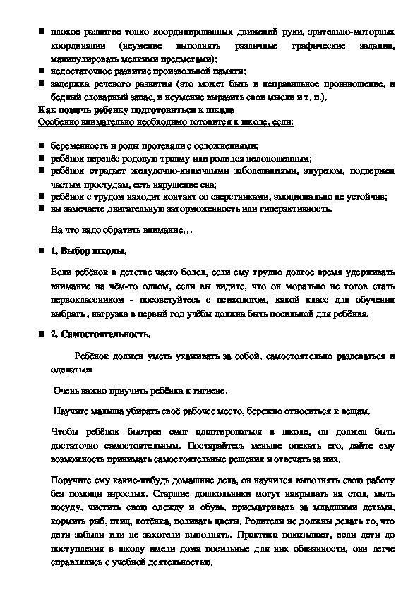 Особенно внимательно необходимо готовится к школе, если: