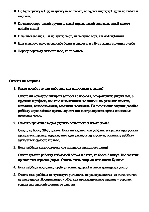первоклассника. Для этого им нужно ответить на ряд вопросов, ответы на которые