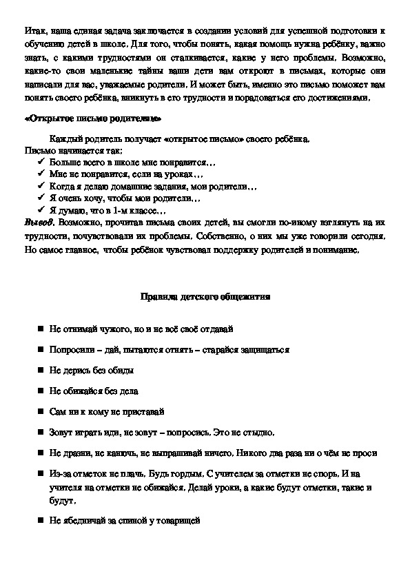 написали для вас, уважаемые родители. И может быть, именно это письмо поможет вам
