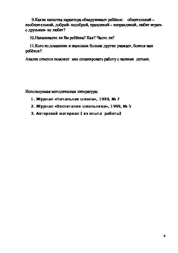 Анализ ответов поможет мне спланировать работу с вашими детьми.