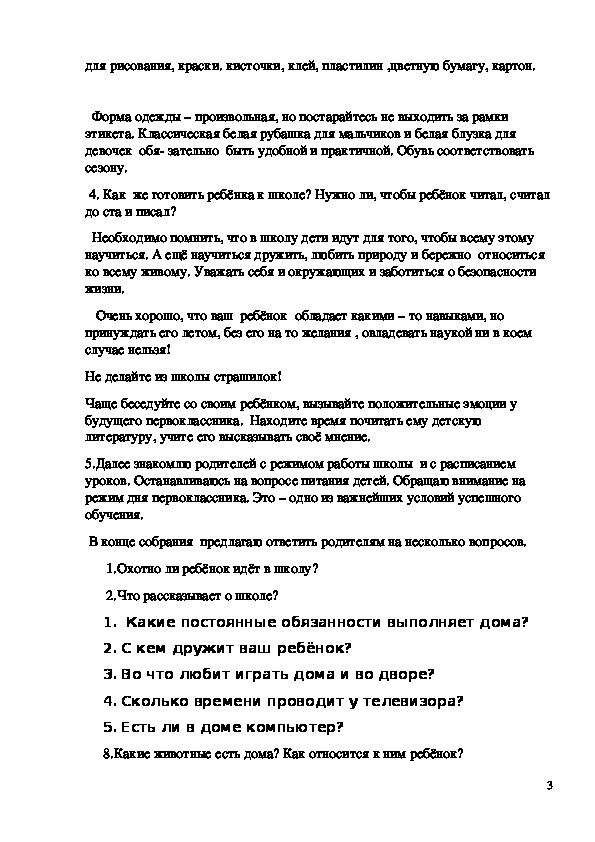 В конце собрания предлагаю ответить родителям на несколько вопросов.