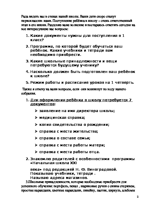 1Рада видеть вас в стенах нашей школы. Ваши дети скоро станут