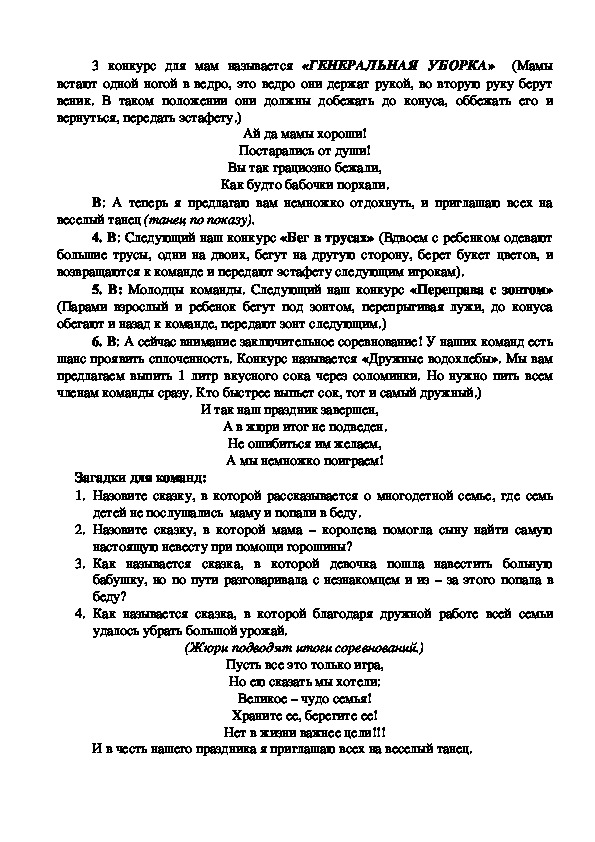 6. В: А сейчас внимание заключительное соревнование! У наших команд есть