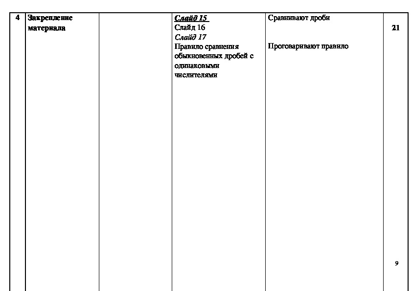 Конспект урока 5 класс на тему : "Сравнение дробей".