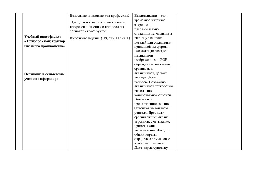 Планируемые результаты: знать о требованиях к выполнению ручных работ, технологию выполнения ручных швов: копировальных, приметывание, выметывание, выполнять образцы, соблюдать технику безопасности при выполнении ручных работ.