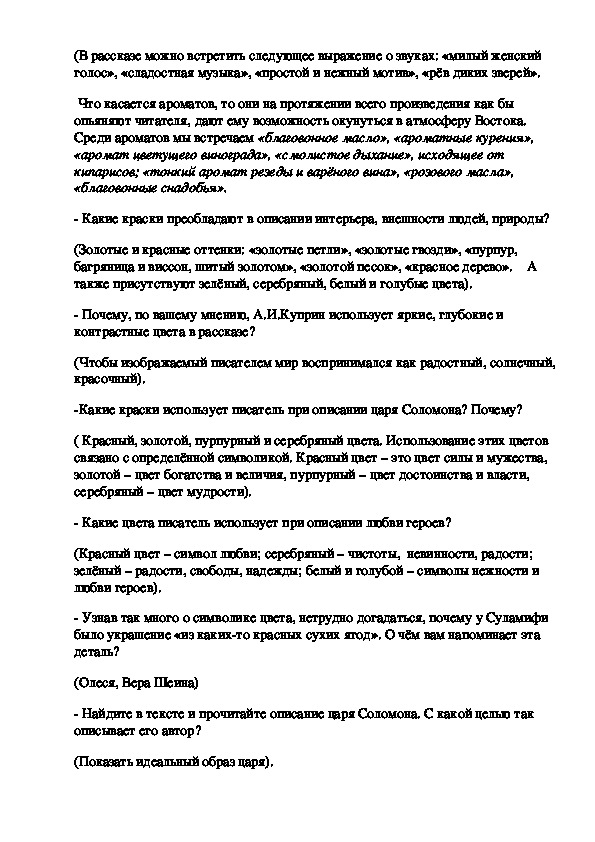 Завершая разговор о рассказе «Суламифь», хочется сказать, что