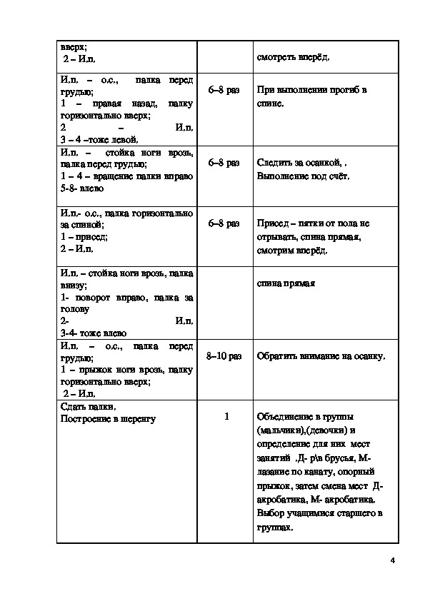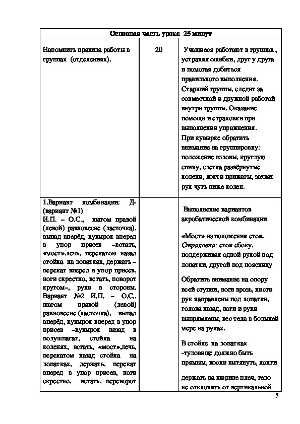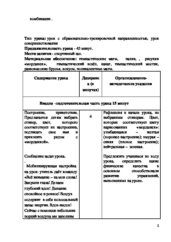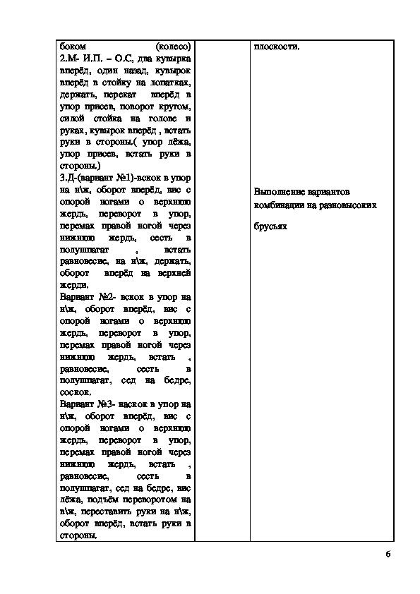1. Совершенствовать технику выполнения ранее изученных акробатических упражнений и упражнений на разновысоких брусьях в комбинации.