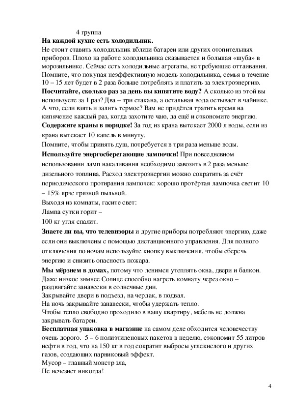 бережно расходовать питьевую воду, тепло, электроэнергию, все ценные