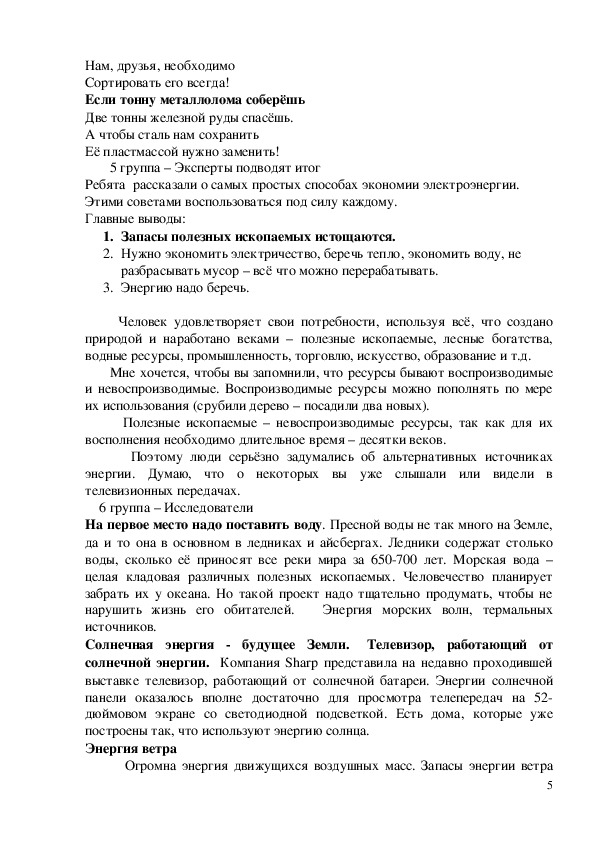 5 группа послушав ответы ребят и познакомившись с выводами в
