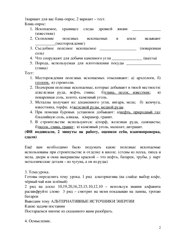 1. Месторождения полезных ископаемых отыскивают: а) археологи, б)