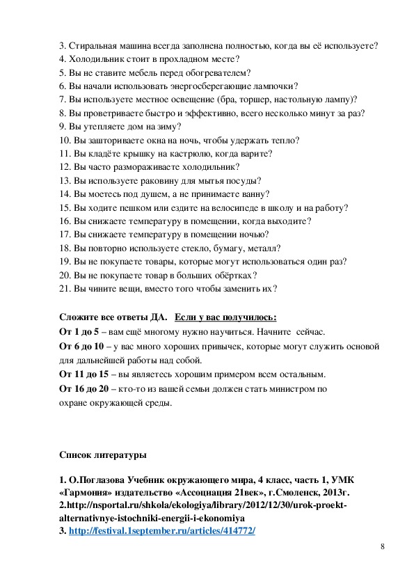 понять, умеете ли вы сами беречь энергию. Предполагается один ответ на