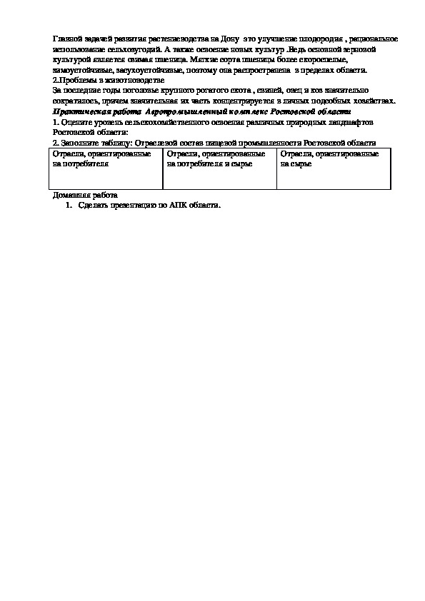 Состав АПК и селхозугодья Ростовской области . Учитель рассказывает об особенностях