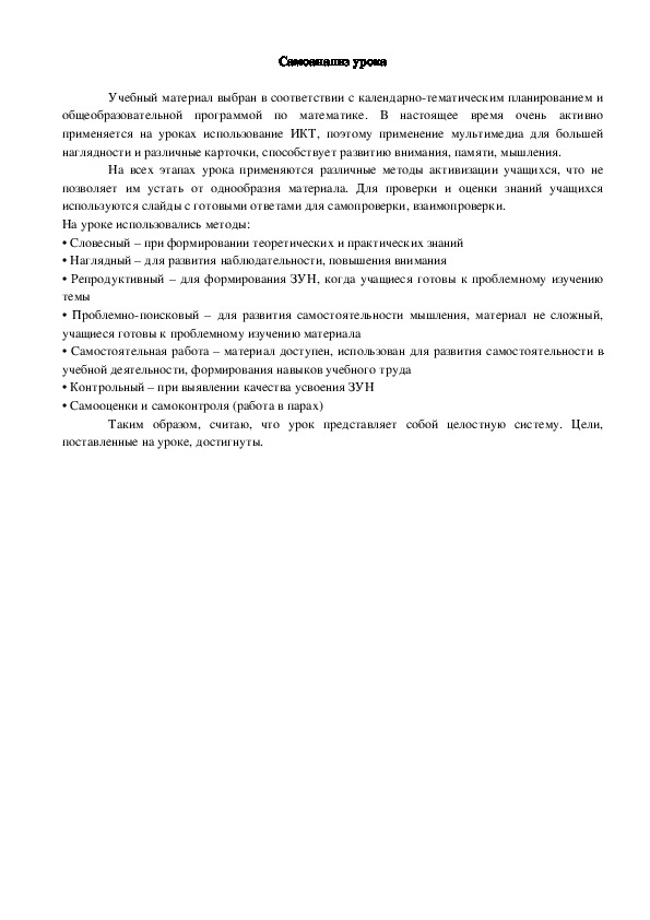 Таким образом, считаю, что урок представляет собой целостную систему. Цели,