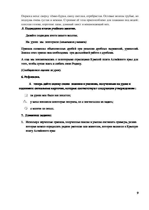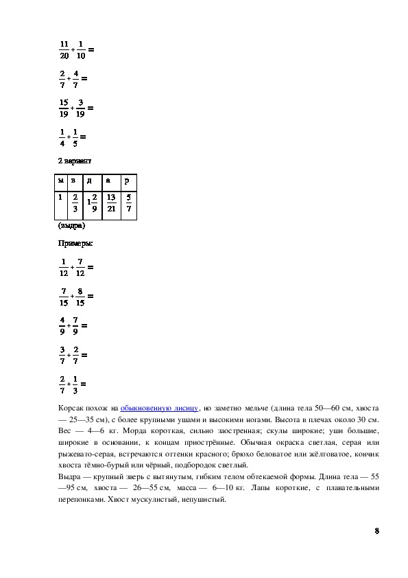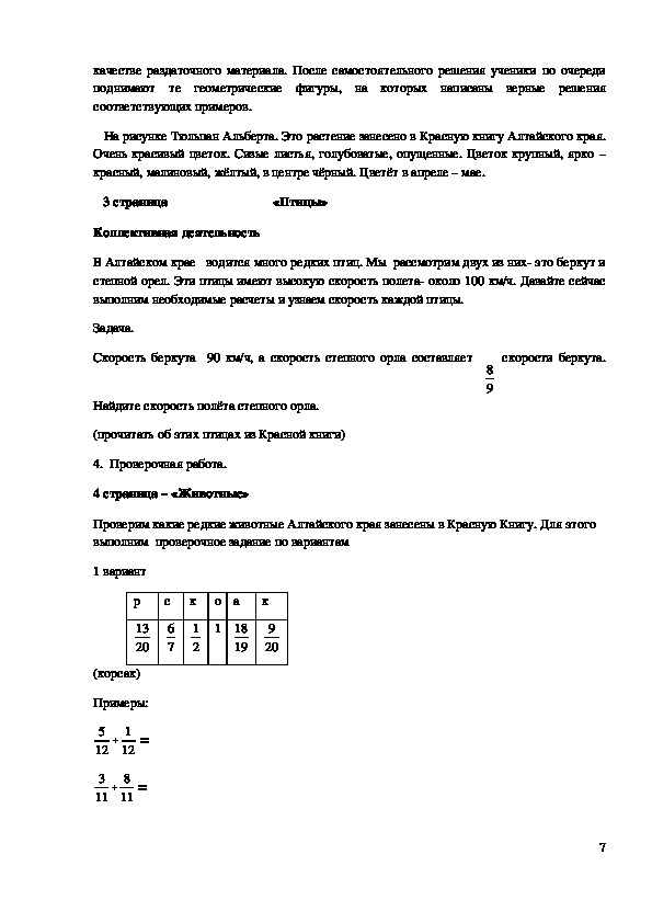 растений и животных. На уроке мы закрепим правила сложения и вычитания дробей и