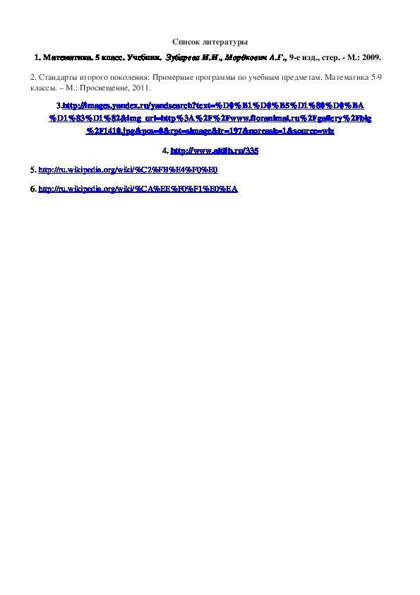 1. Математика. 5 класс. Учебник. Зубарева И.И., Мордкович А.Г., 9е изд., стер. М.: 2009.